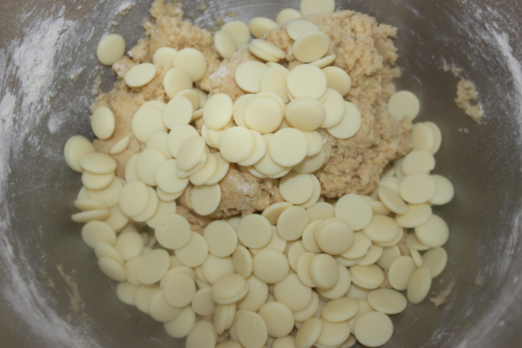 - Un mélange et terminez avec les pépites de chocolat blanc.