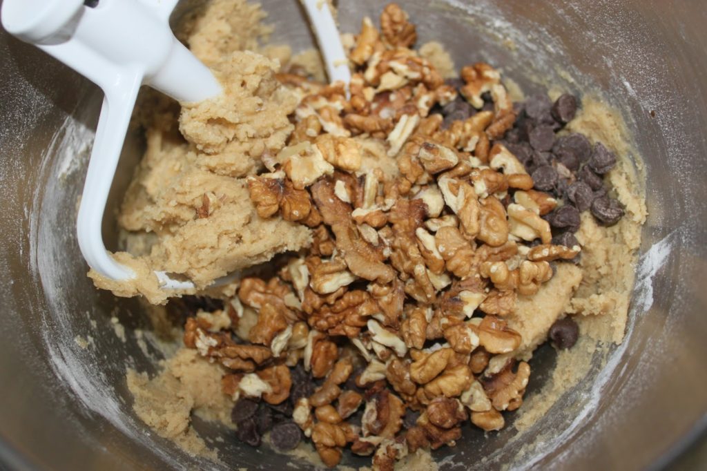 noix et ajoutez-les dans la pâte avec les pépites de chocolat.