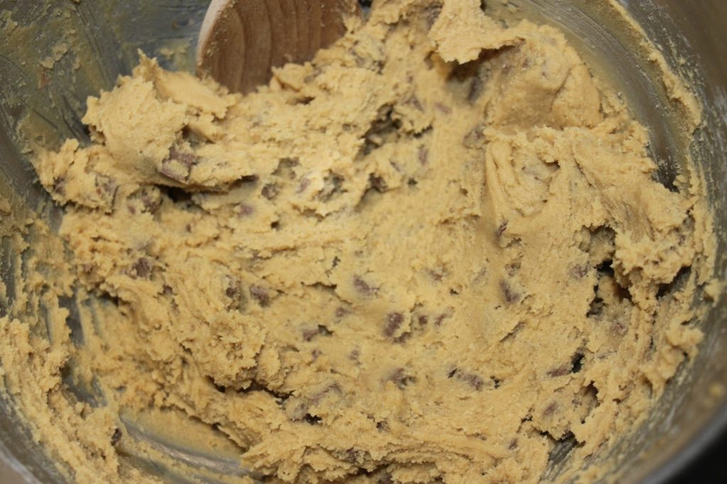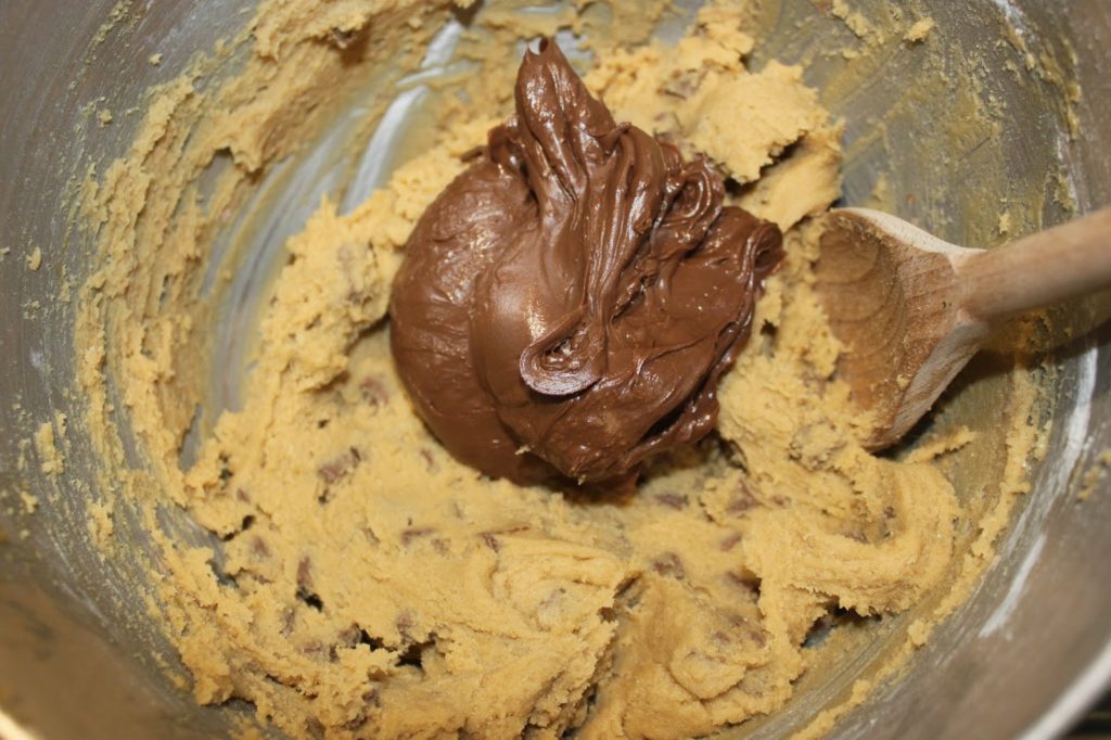 - Mélangez succinctement avec un couteau pour ne pas incorporer la pâte à tartiner dans la pâte à cookies. Sinon vous risquez d’avoir une pâte mélangée.
