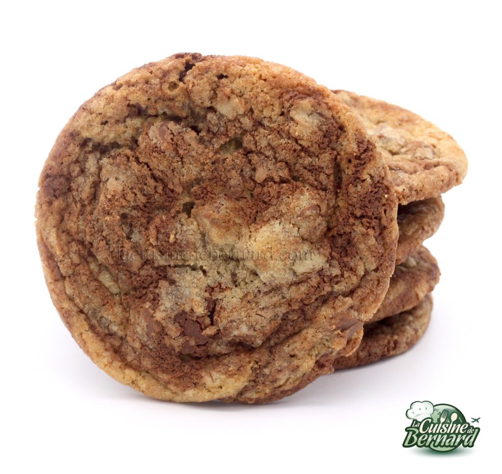 Avec le froid ambiant, j’ai envie de réconfort culinaire ! Des cookies encore oui, mais avec des marbrures de pâte à tartiner. Vous pourrez bien sûr prendre du Nutella si vous le souhaitez, mais j’ai pris pour ma recette, une pâte similaire, mais sans huile de palme. Le résultat est délicieux et totalement décadent…