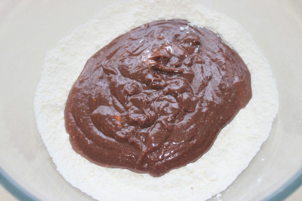 Versez dans la pâte et mélangez.