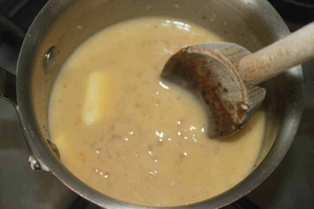 - Mélangez constamment toujours sur feu doux. Le beurre garde sa texture crémeuse et ne tranche pas.