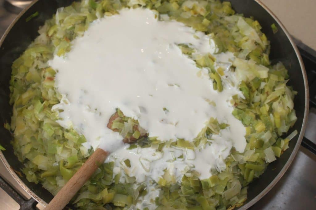 - Laissez cuire une vingtaine sur feu modéré en mélangeant de temps en temps. Ajoutez la crème liquide entière et mélangez. Laissez recuire 5 minutes.