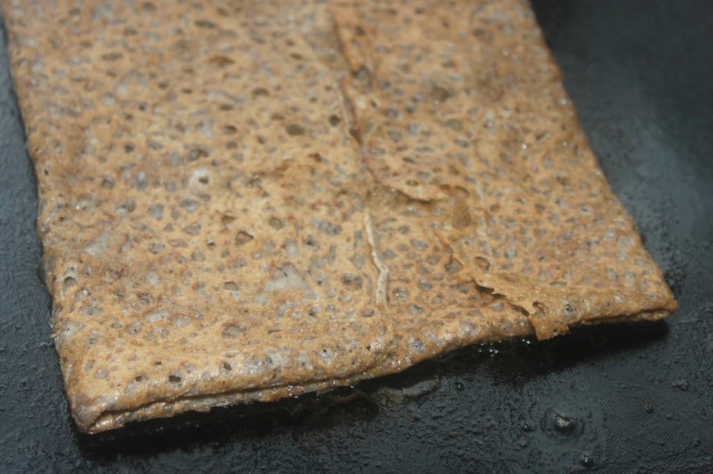 - Faites 4 crêpes sur un bilig (voir le processus ICI) ou faites-les à la poêle.