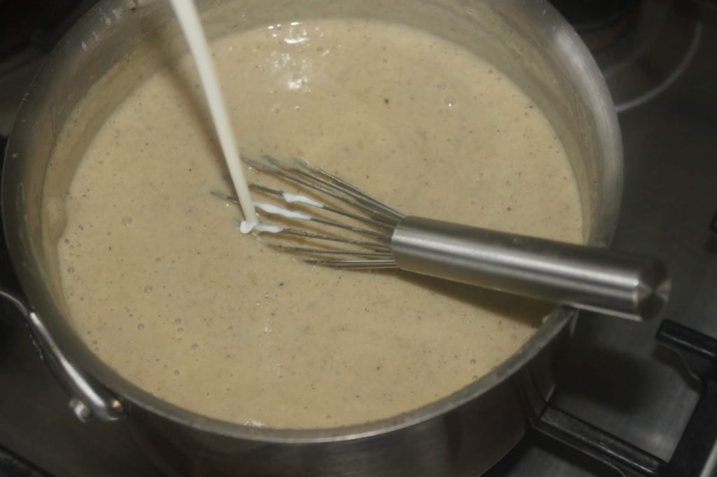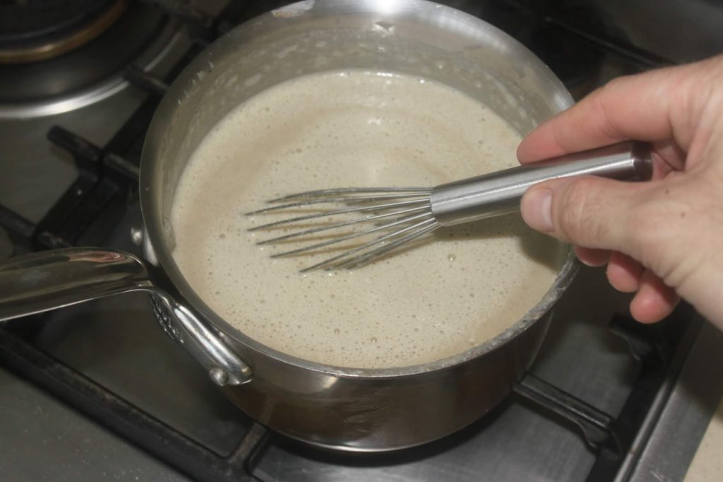 - Rerversez dans la casserole et mettez à chauffer tout en mélangeant au fouet.