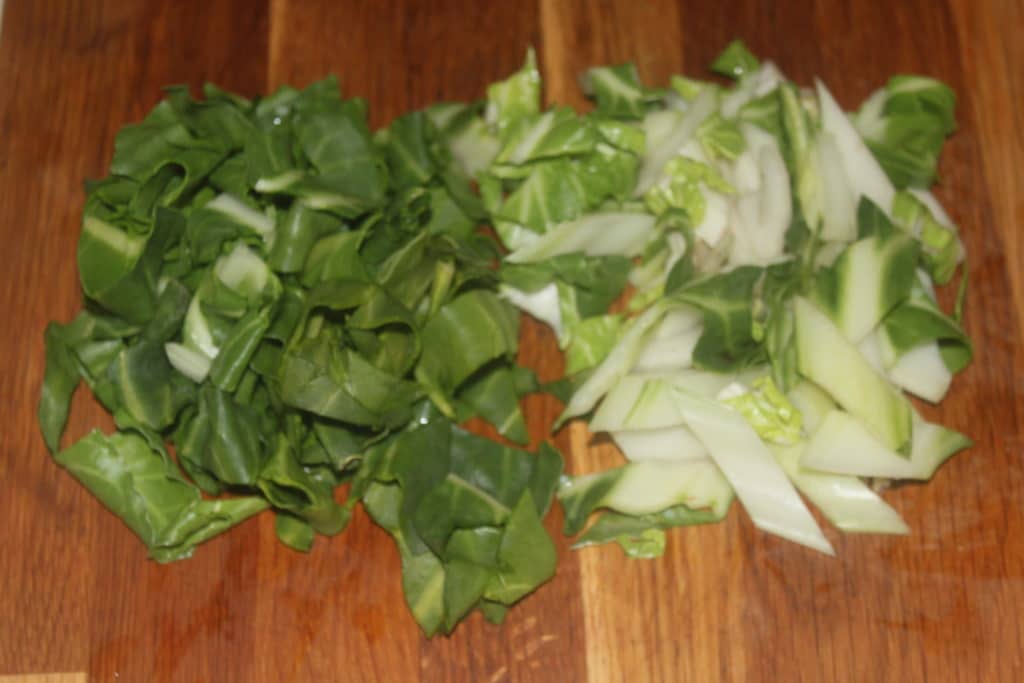 En primer lugar, ponga en remojo las lentejas de coral en un gran volumen de agua fría durante 4 horas. Se hincharán hasta casi el doble de su peso. Preparar las acelgas retirando parte de su base y cortándolas en trozos.