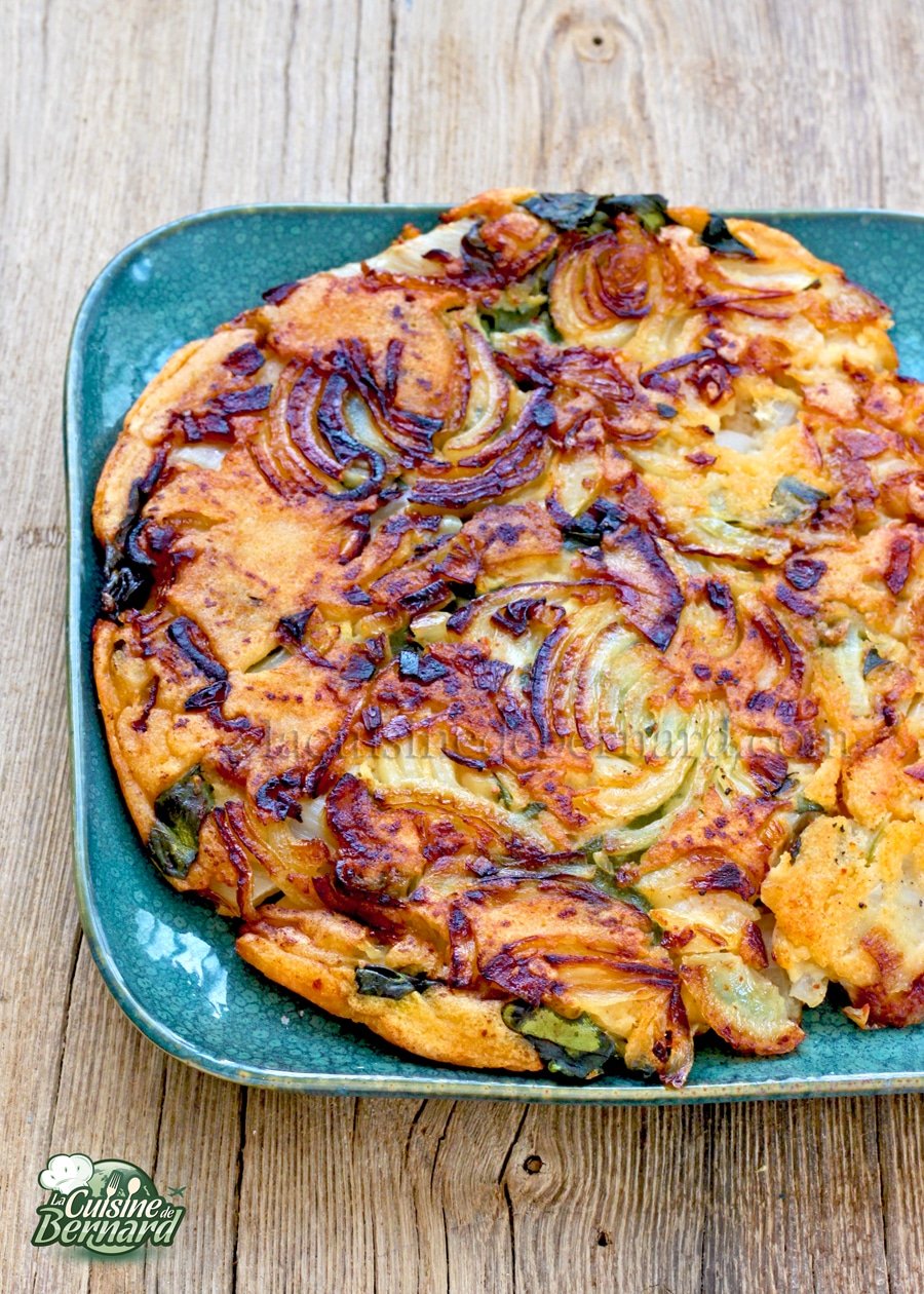 De momento, intento comer bien (¡bueno, sobre todo bien y variado!) a pesar del encierro, y con productos que puedo encontrar fácilmente a mi alrededor. Me encantan el pajeon y el bindae-tteok, dos tortitas coreanas. El primero se hace con harina y el segundo con judías mungo amarillas, cuya receta os di hace tiempo(ver AQUÍ). Pensé que también podría funcionar con lentejas coralinas. Este es el caso y el resultado es delicioso. Con sólo acelgas y cebollas, el resultado es un panqueque crujiente y a la vez esponjoso, naturalmente vegano y sin gluten, pero sobre todo sencillo de hacer con ingredientes fácilmente disponibles. Por supuesto, puede utilizar acelgas, zanahorias picadas, brócoli, maíz, etc. en su lugar.