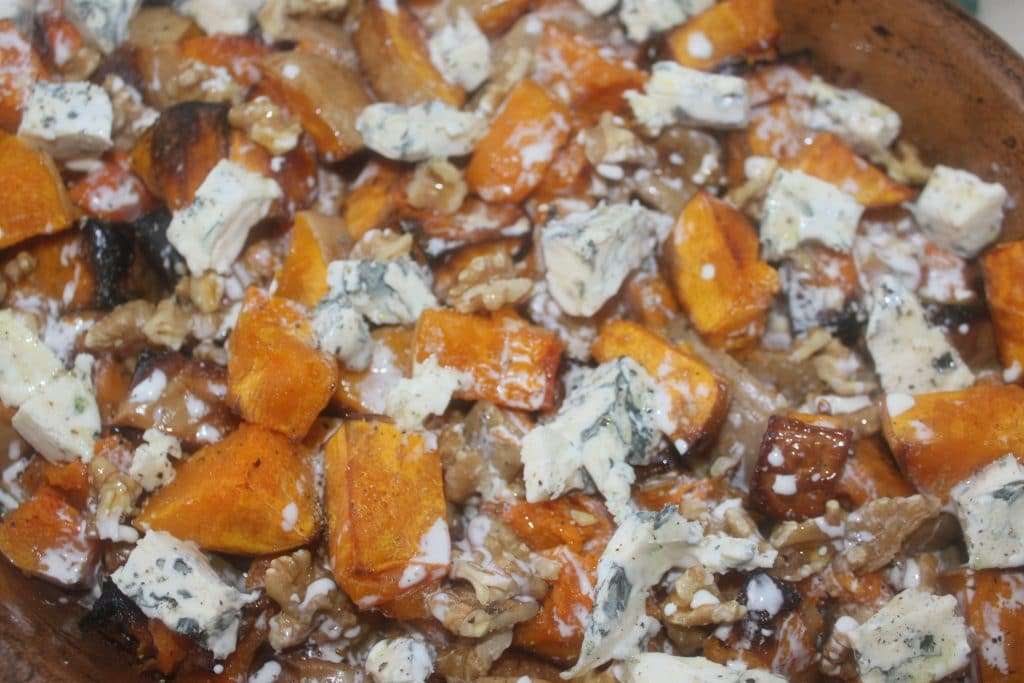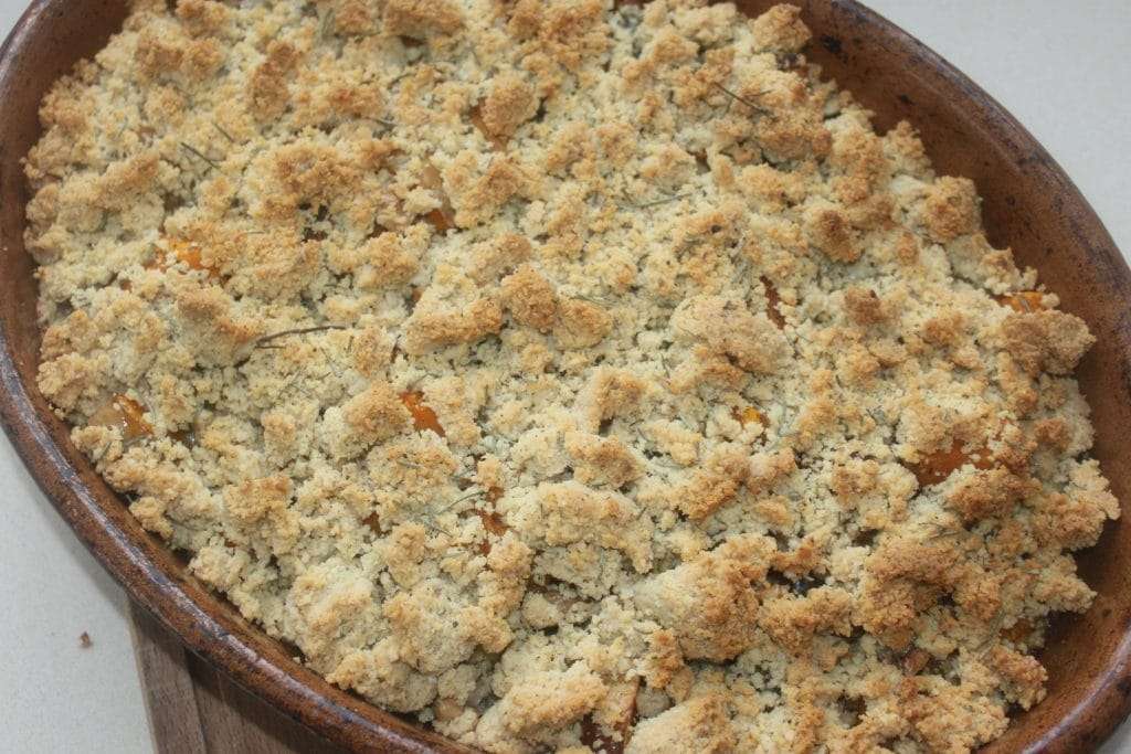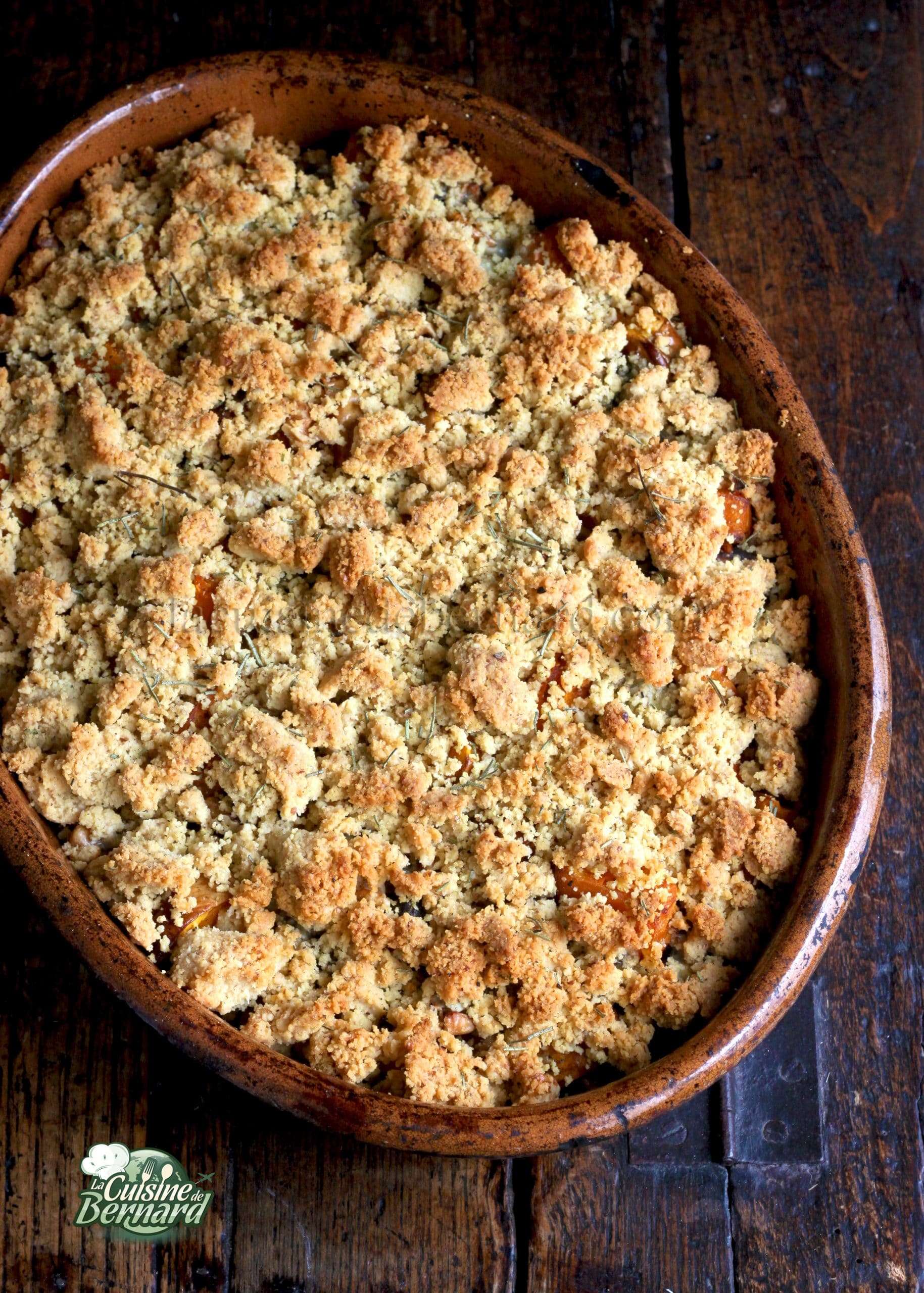 Un beau crumble de saison ! J’adore les courges butternut et on m’a donné la bonne idée d’un crumble salé avec des noix. J’y ajoute ici un peu de fromage bleu pour contrebalancer le côté doux de la courge. C’est un véritable délice. Ça croustille et c’est savoureux à souhait. Et surtout pas du tout sec. On pourrait le croire avec la photo, mais au contraire ! Parfait avec une simple salade ou pour accompagner une viande.