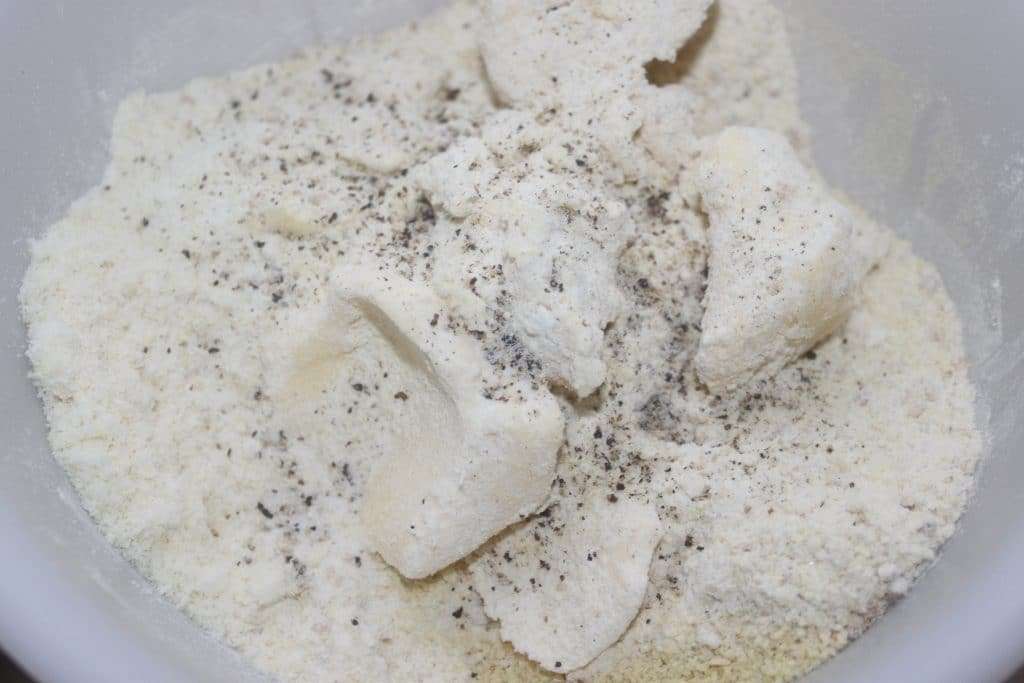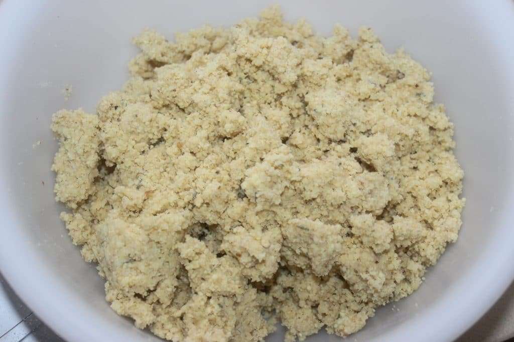 Mélangez du bout des doigts jusqu’à avoir une pâte homogène qui se brise en la pressant.
