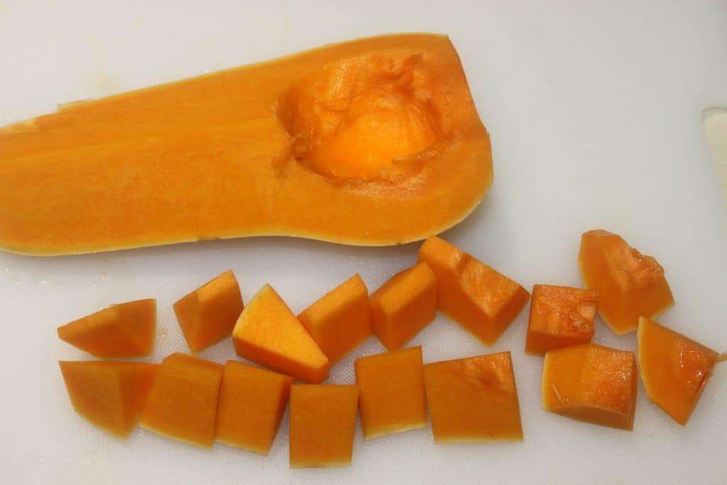 Retirez les graines puis coupez en morceaux.