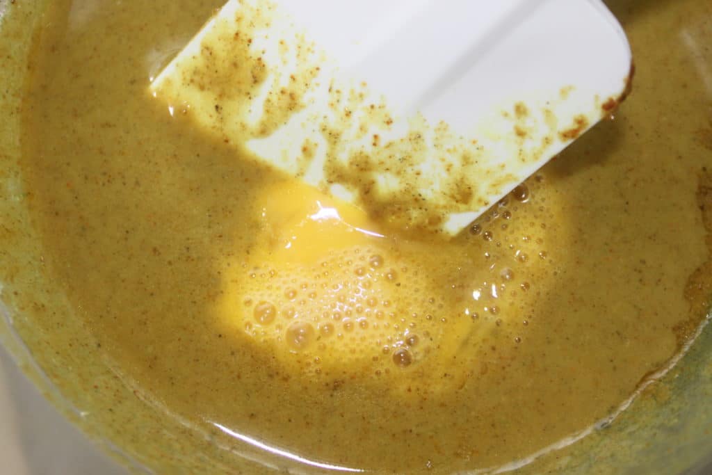 El curry está listo cuando el centro sigue temblando. La parte inferior del curry se coloreará deliciosamente y dará deliciosos sabores. Casi se carameliza en el fondo y los lados. Servir con arroz blanco.
