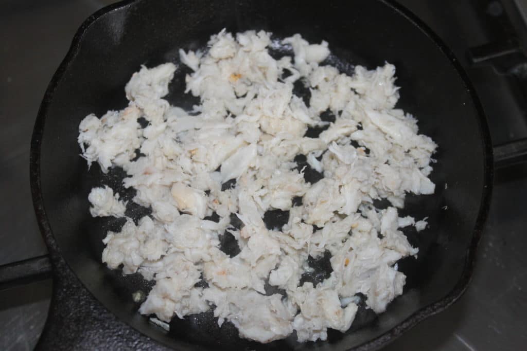 Cubrir bien la carne de cangrejo, luego poner una tapa y dejar que se cocine a fuego lento.