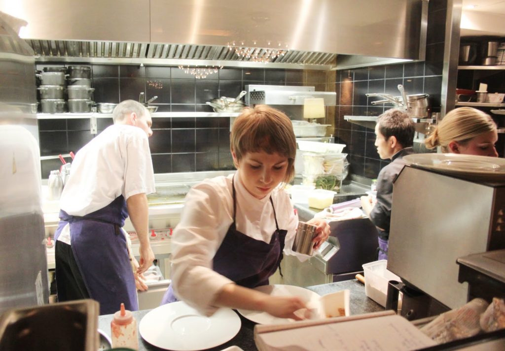 La cuisine étant ouverte sur la salle, on peut la cuisine aux carreaux chics et le travail phénoménal que les cuisiniers professionnels produisent en permanence. C’est ici que l’on réalise que ce métier est difficile.