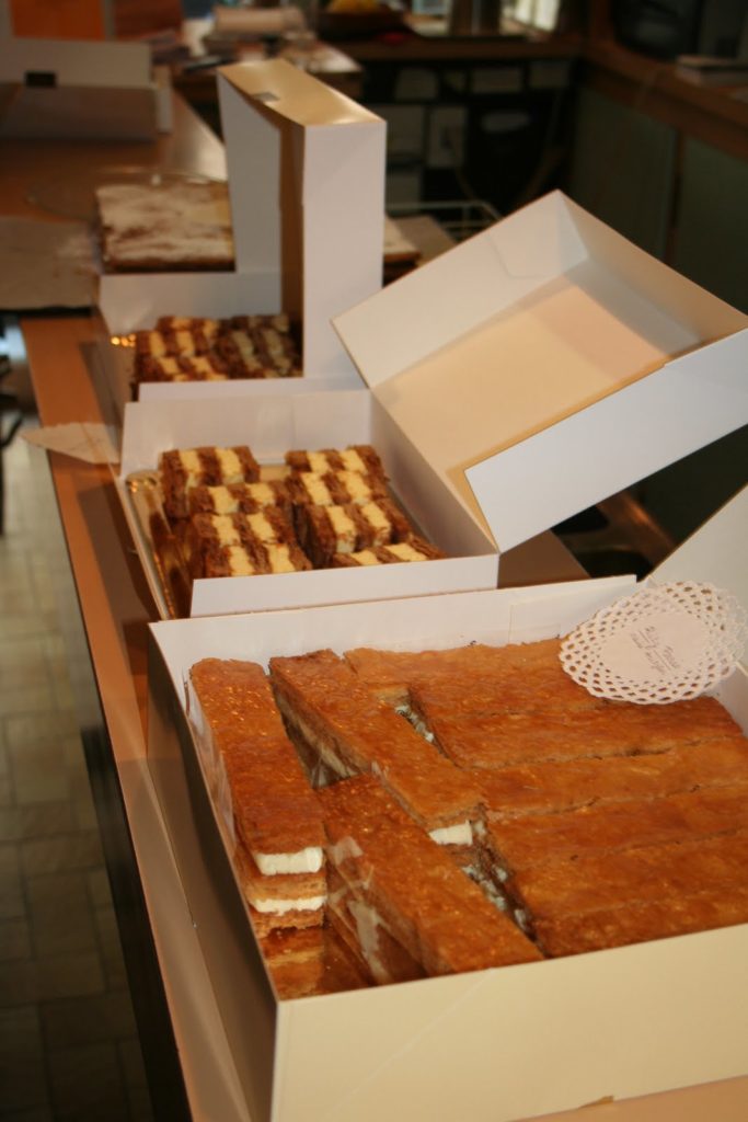 Et en version dégustation. C’était finalement la part la plus petite de tous les mille-feuilles qui allaient suivre. Il faut imaginer que nous en avons mangé onze à la suite!!