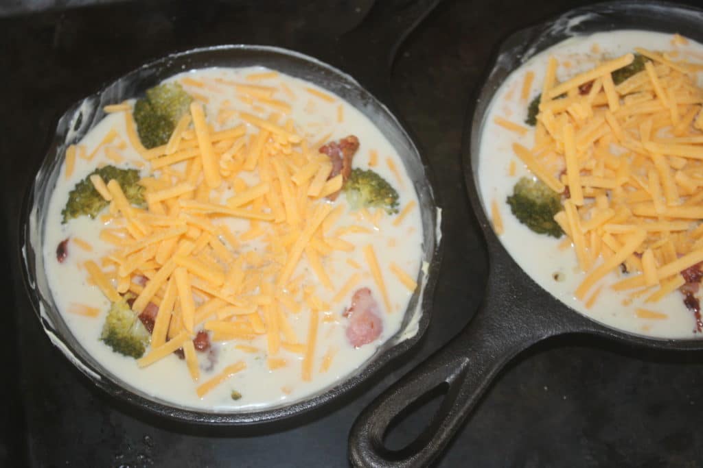 Pour cette recette, il faut pendre des poêles allant au four, donc pas de manches en bois ! Je suis resté fidèle à la version que j’ai goûté à Seattle et j’ai acheté la marque Lodge. Attention car c’est de la fonte, et il faut bien les sécher puis les huiler à l’intérieur pour éviter la rouille après chaque utilisation. J’ai lu des critiques sur cette marque et ces poêles, mais les gens ne les ont simplement pas utilisées comme il faut. J’ai plein de poêles en fonte de la marque Skeppshult et c’est le même problème, cela requiert de les entretenir. Et même si cela rouille, on peut toujours les rattraper en reculottant. En faisant cela, vous les garderez toute votre vie. J’ai payé ces petites poêles de 16cm 11,50$ sur place. Mais vous les trouverez aussi sur internet. Et vous pouvez choisir n’importe quelle taille, il suffit de mettre plus d’ingrédients.