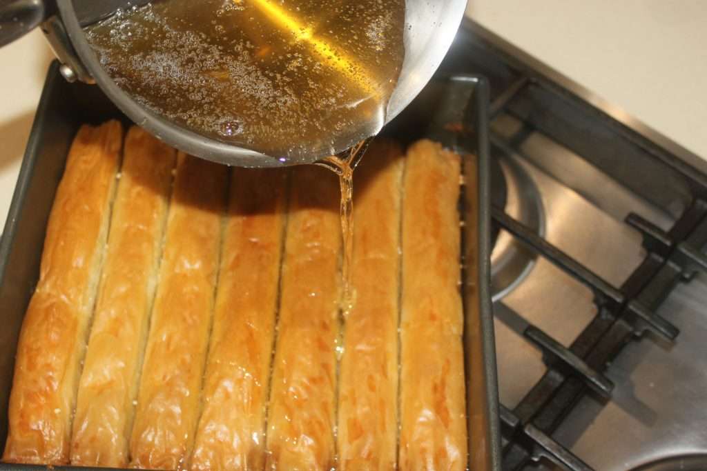 Mettez au four à 170°C chaleur tournante pendant 30 minutes. Pendant ce temps préparez le sirop. Mettez tous les ingrédients dans une casserole sur feu modéré.