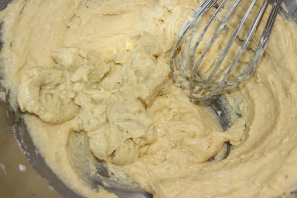 - Mélangez bien et ajoutez la crème pâtissière. Mélangez de nouveau.
