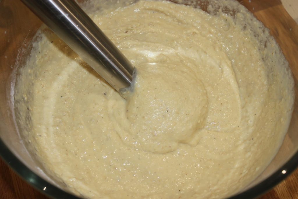 - Mixez le tout en une purée fine. J’utilise pour cela un mixeur plongeant, mais vous pouvez aussi faire cela au mixeur classique.