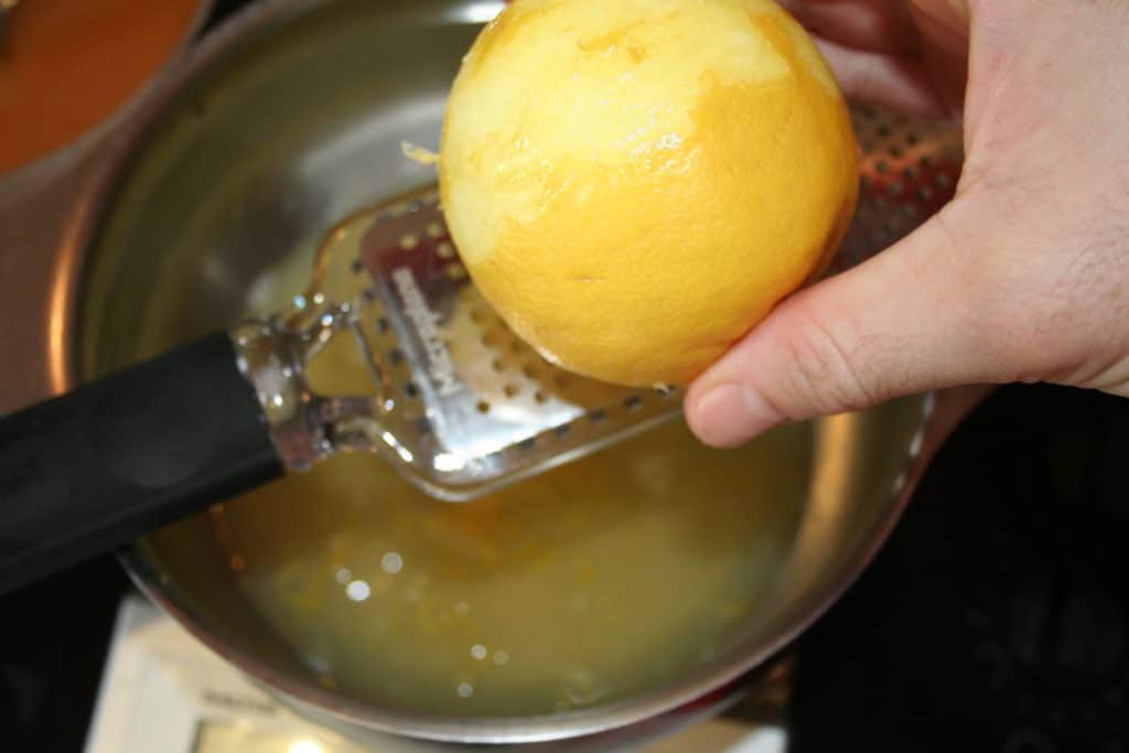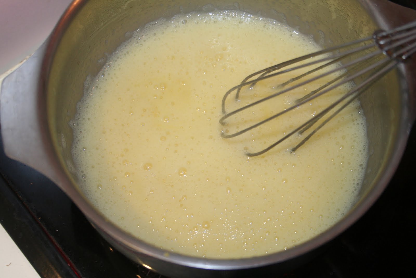 - Pour la crème citron, versez le sucre, le jus de citron et les zestes dans une casserole. Ajoutez les jaunes et mélangez bien.