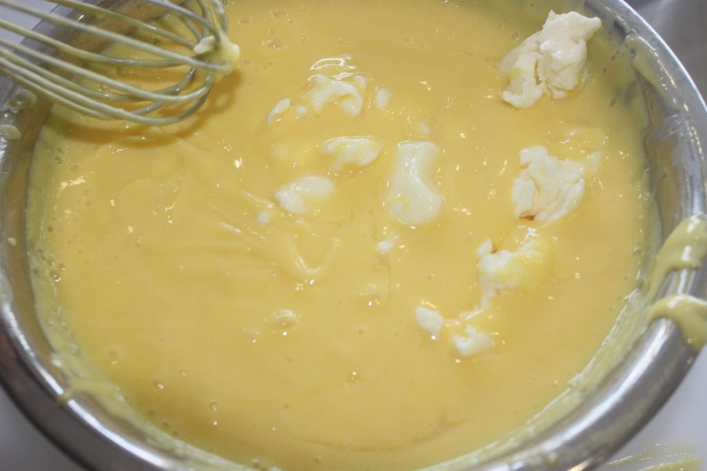 - Laissez refroidir à 40°C puis ajoutez le beurre coupé en morceaux.