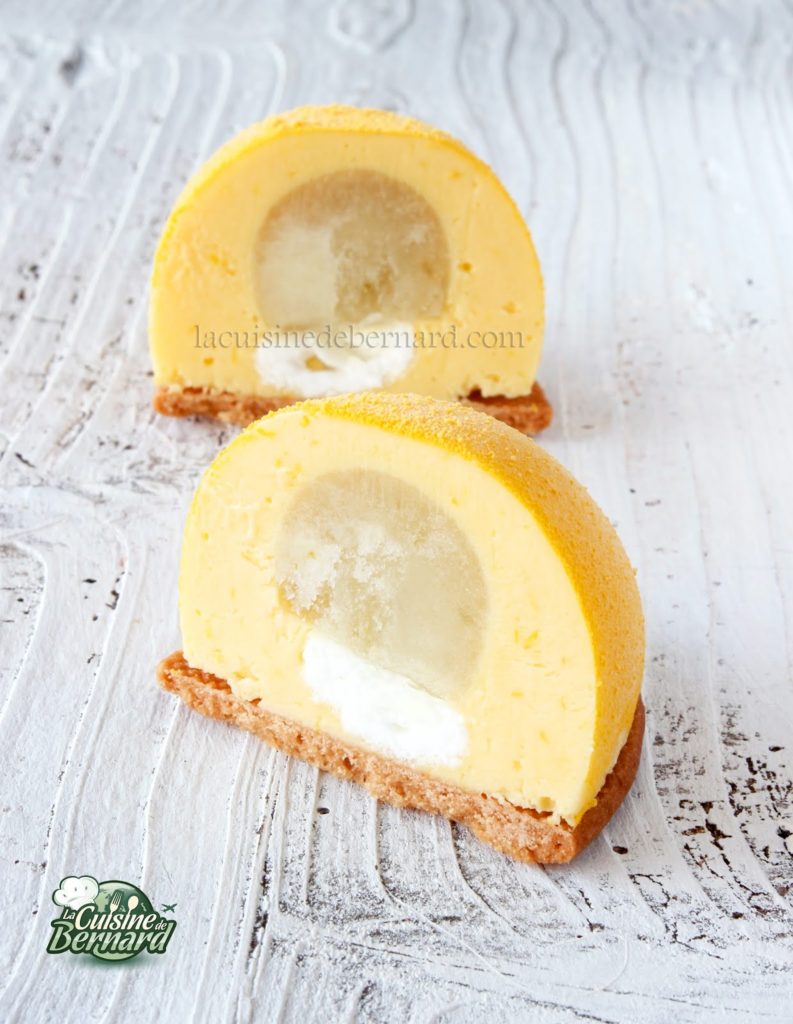 - Ajoutez l’insert de citron vert et la meringue protégée par le chocolat blanc.