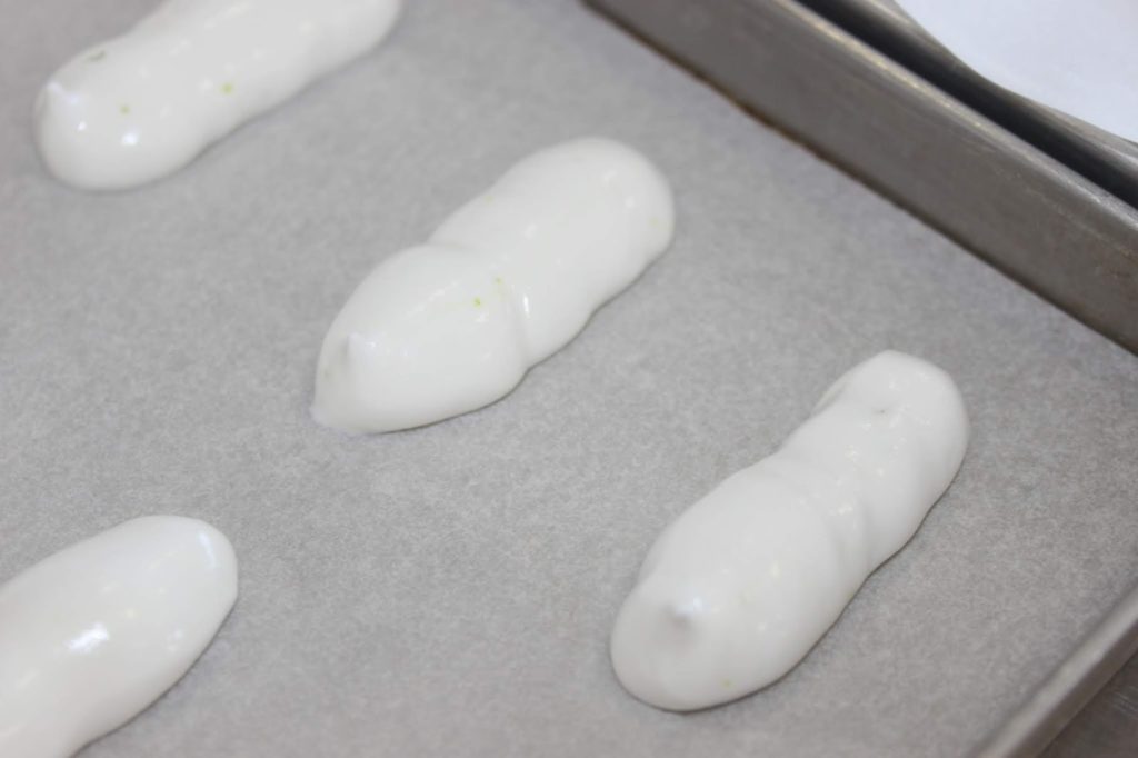 - Faites à la poche à douille des traits un peu plus petits que la taille du moule citron. Faites-en plus que nécessaires au cas où vous en casser par la suite.