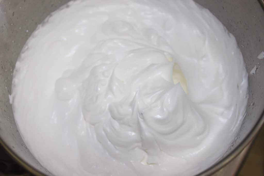 - Préparez la meringue en fouettant les blancs avec le sucre en poudre. Les blancs doivent être à température ambiante.