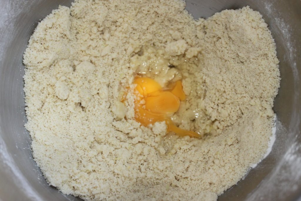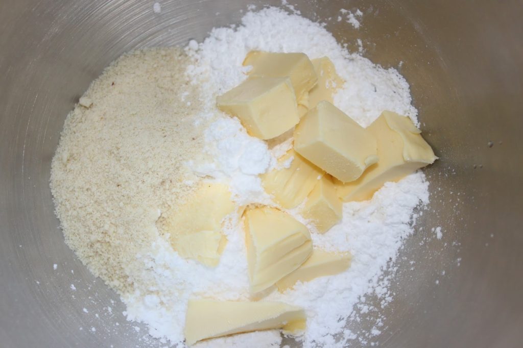 - Cette recette est plus simple à gérer sur deux jours. Le premier jour vous pouvez faire les sablés, les meringues et l’insert. Le lendemain vous terminez avec la crème, la congélation finale et la décoration. Préparez la pâte sucrée. Mettez tous les ingrédients sauf l’œuf dans un bol ou dans le bol du robot.