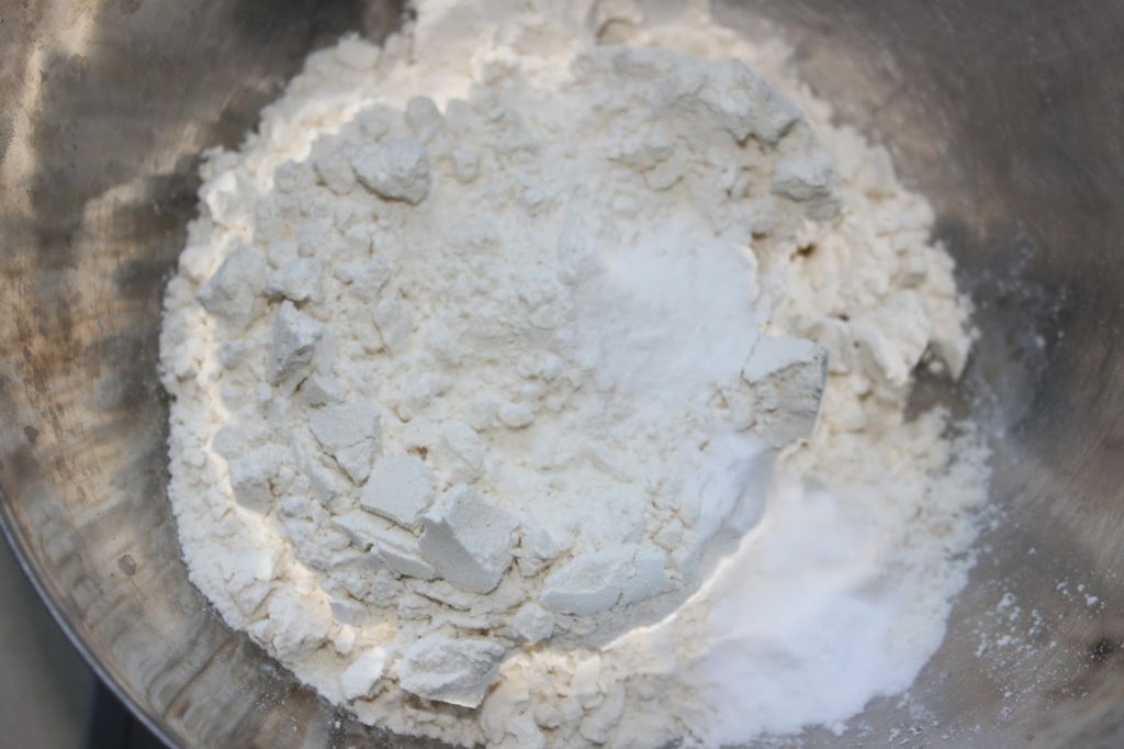 - Mélangez la farine, le sel, la levure et le bicarbonate de sodium.