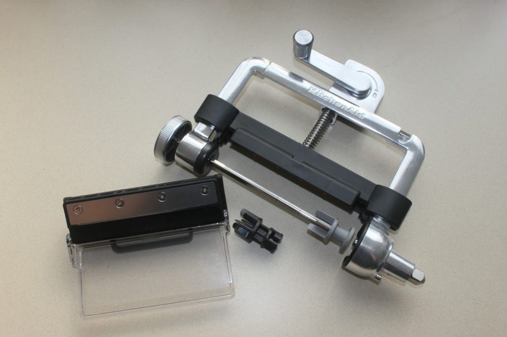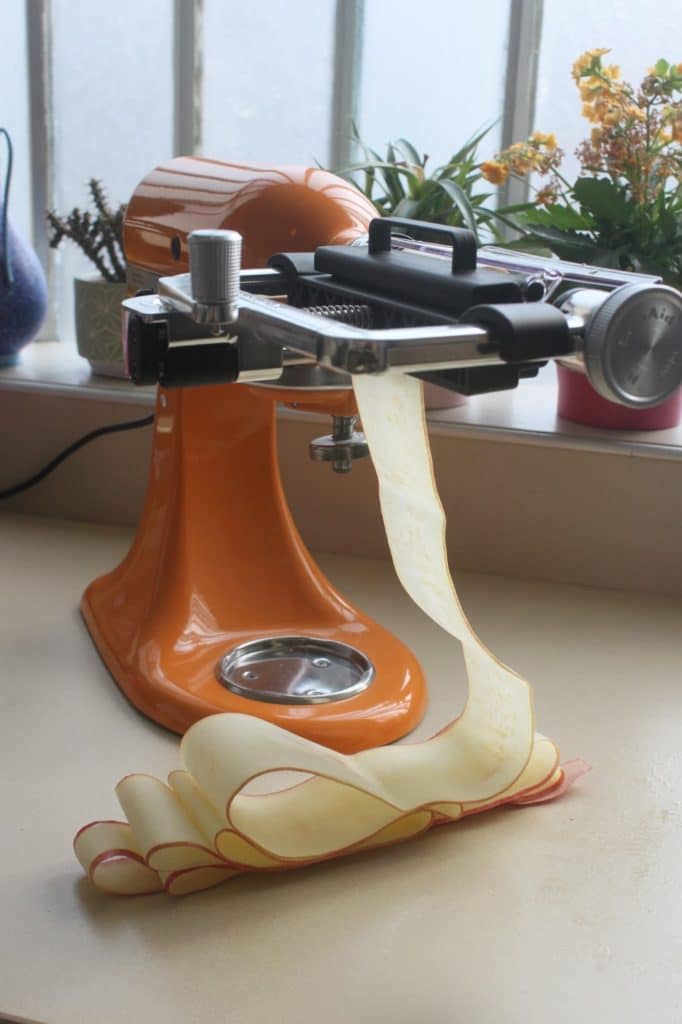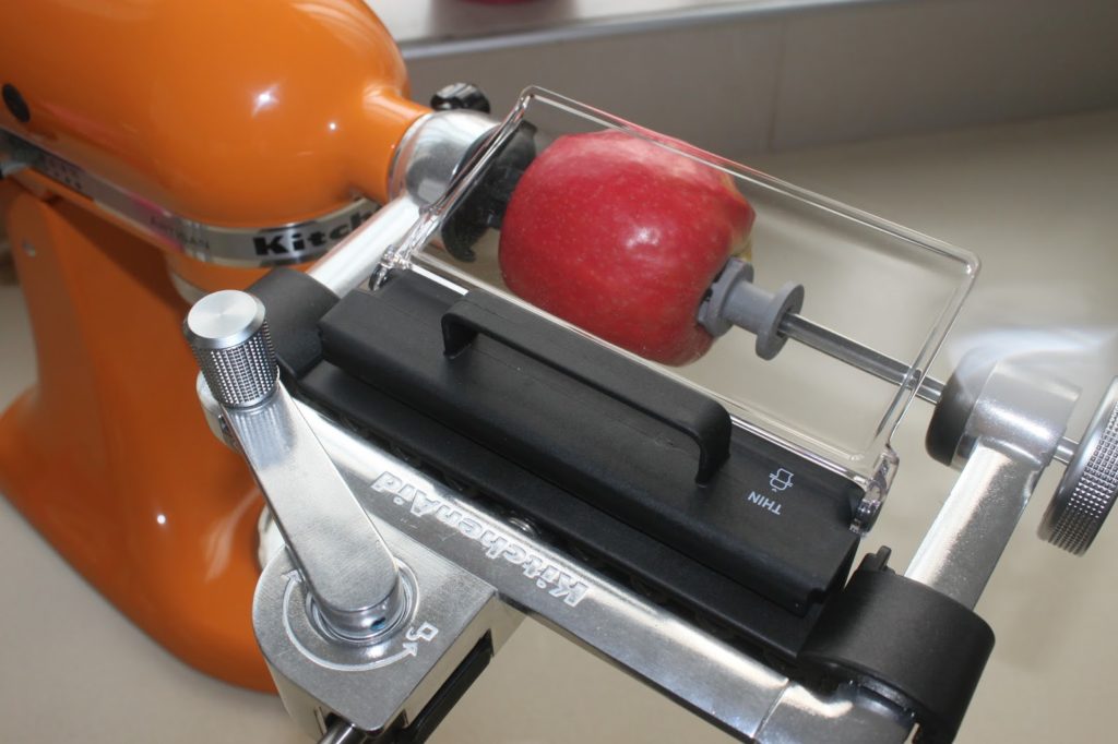 Pour cette recette, j’ai décidé d’utiliser un nouvel ustensile de KitchenAid que j’adore. Il s’agit d’un coupe légumes ou fruits qui réalise des bandes. Il se place sur les robots de la marque.