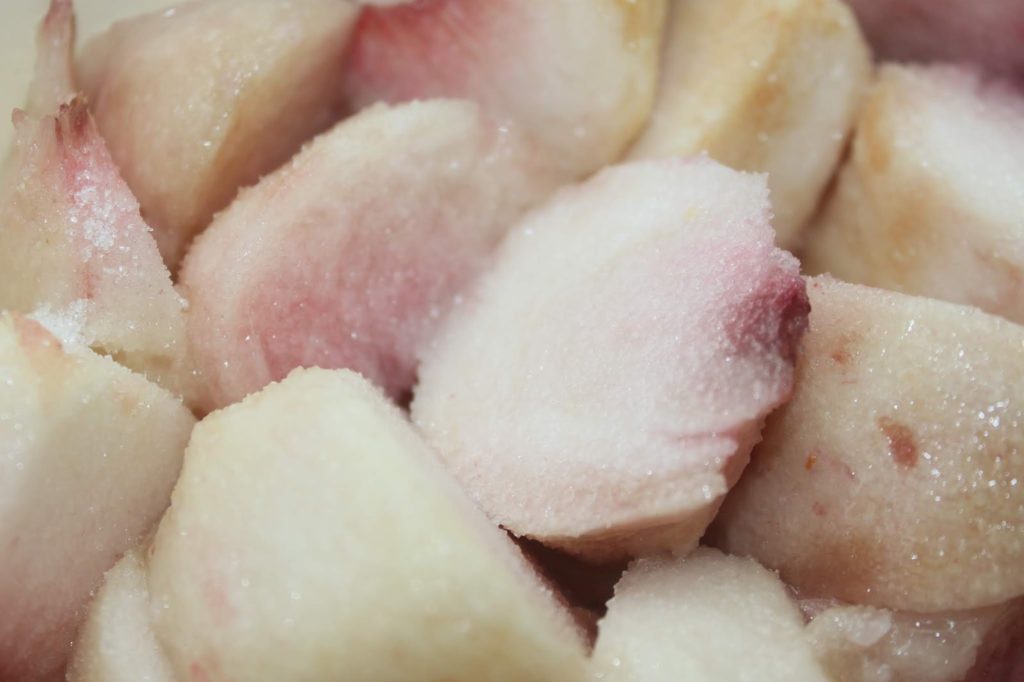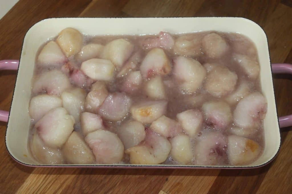 Épluchez-les et coupez-les en gros morceaux. Placez-les dans une casserole avec deux cuillerées à soupe de sucre.