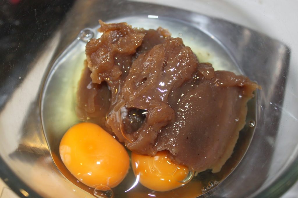 - Mélangez les œufs et la crème de marrons comme une omelette.
