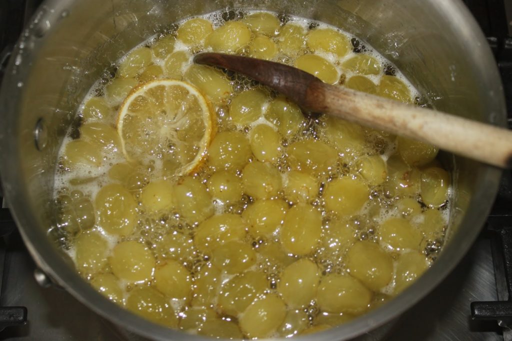Después de mi viaje a Grecia, ¡tengo un montón de recetas en mente que quiero compartir con vosotros! Aquí, una sencilla de uvas cocidas con azúcar que da algo entre mermelada, compota y fruta en almíbar. Es una verdadera delicia con un yogur griego muy espeso. Lo comí el último día de mi estancia. Si hubiera sabido que me iba a gustar tanto, me lo habría comido desde el principio. Fue muy bueno. ¡De todos modos, me he vengado, porque he hecho un montón de ellos en el taller para publicarlos en mi blog de cocina!