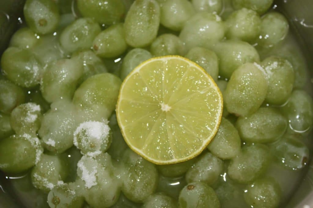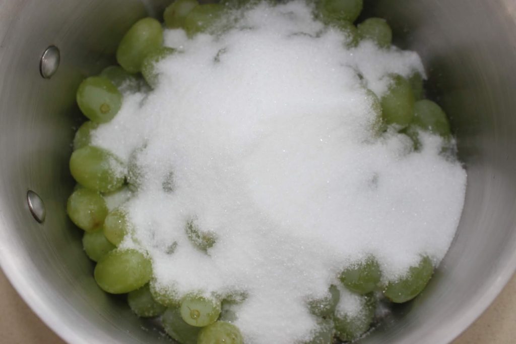Para esta receta, utilice uvas blancas sin semillas.