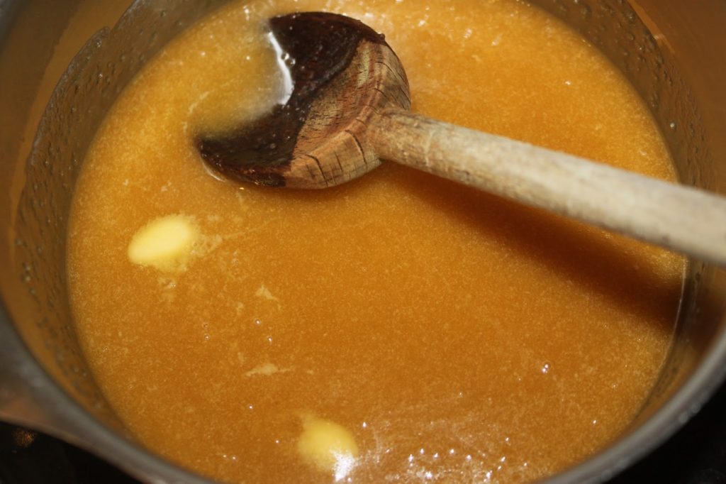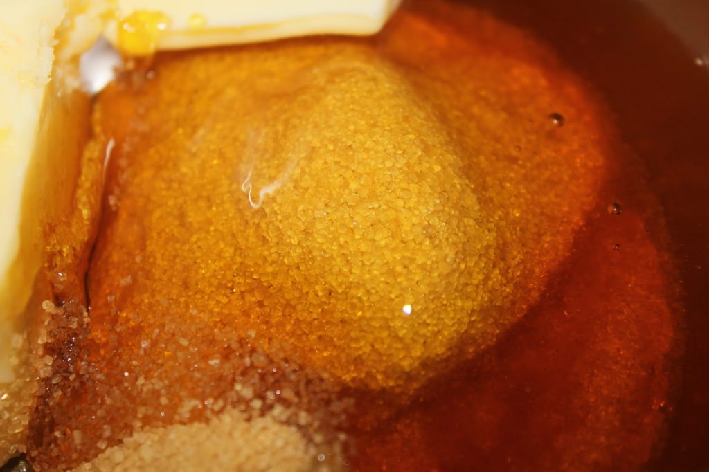Place the cane sugar, salted butter, salt and golden syrup in a saucepan over low heat.
