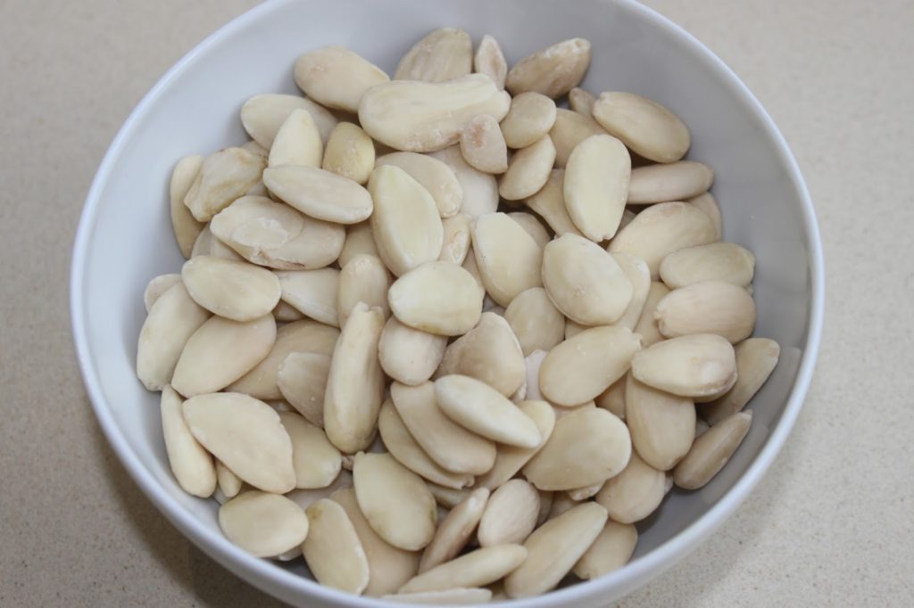 - Prenez pour cette recette, des amandes sans peaux.