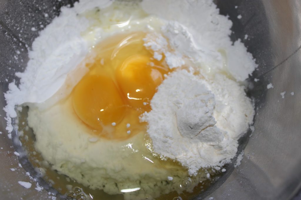 Para la masa: poner todos los ingredientes en un recipiente.