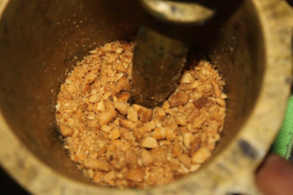 Puedes ponerlas en una batidora pequeña o machacarlas toscamente en un mortero.