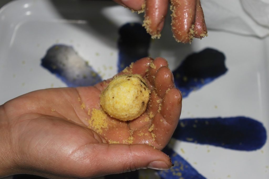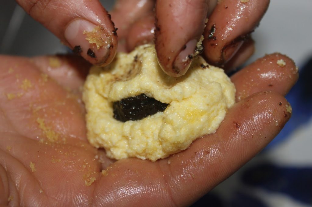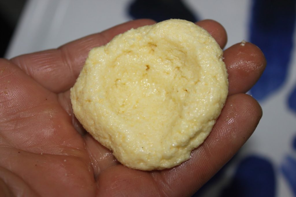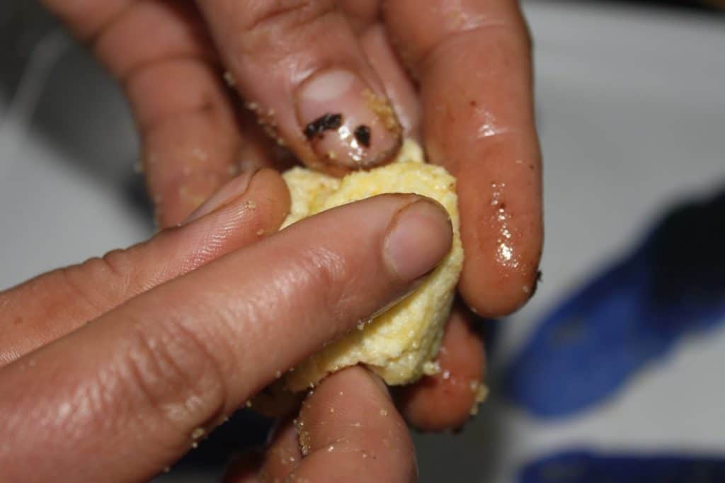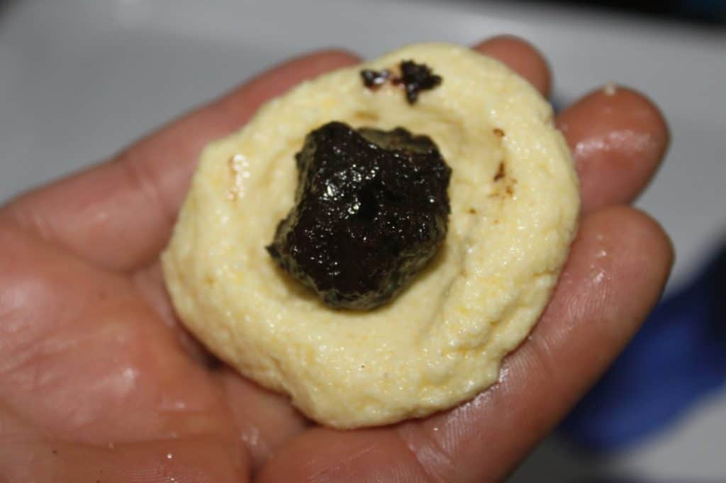 - Prélevez une boule grosse comme un œuf. Faites une cavité au centre.