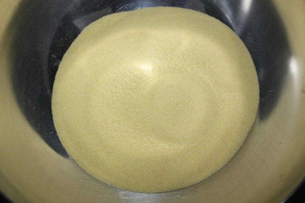 - Versez la semoule fine dans un récipient.