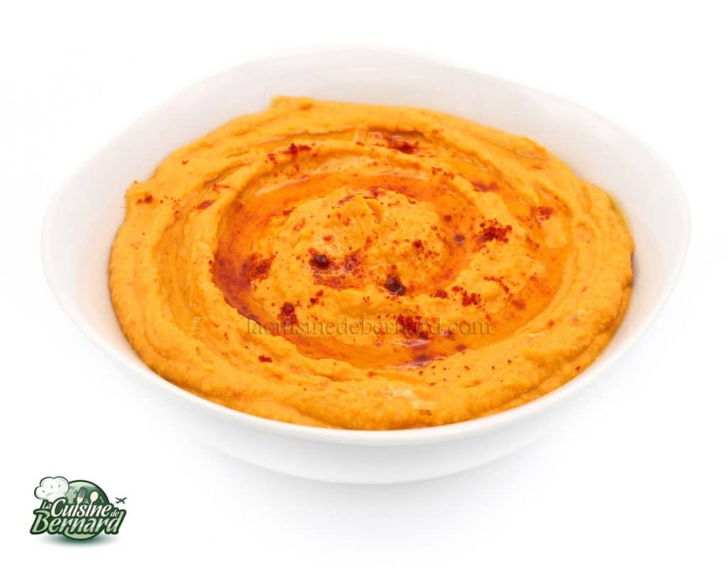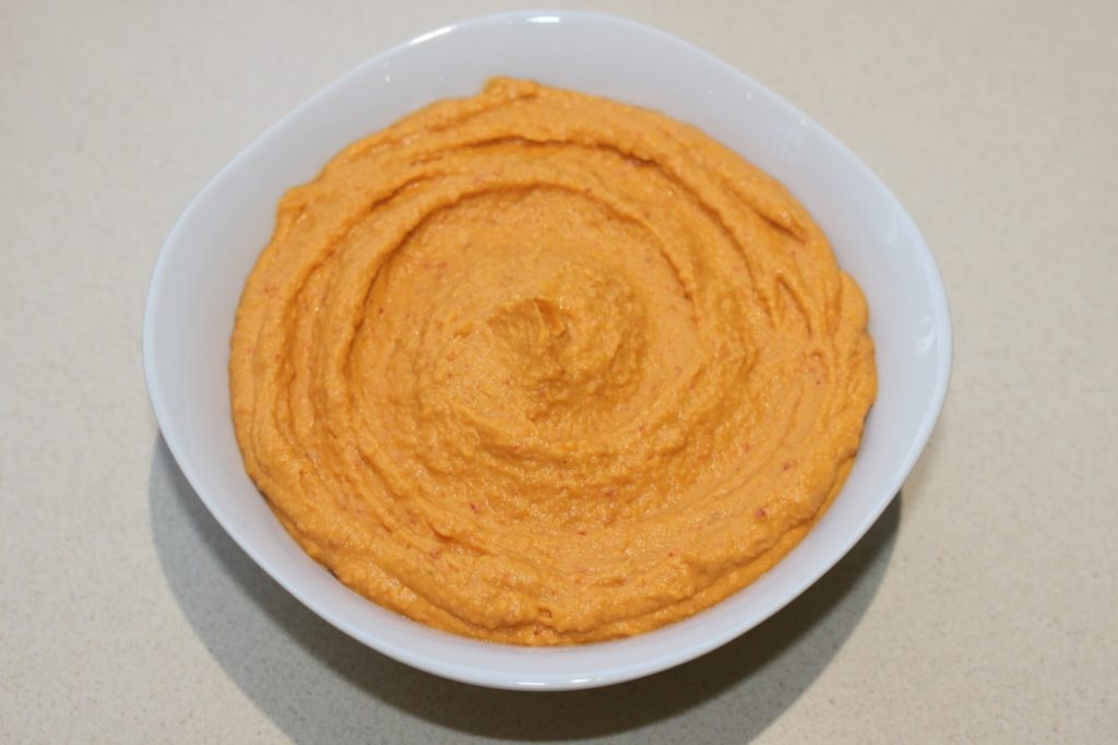 - Versez le hoummos de poivron rouge dans des bols, puis arrosez d’huile d’olive et parsemez d’un peu de paprika.