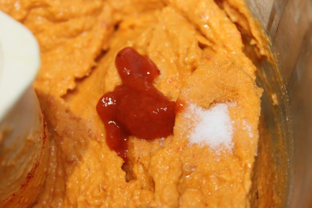 - J’ai utilisé une purée de piment que j’avais au frais. Mais n’hésitez pas à utiliser du piment fort en poudre ou même de la harissa.
