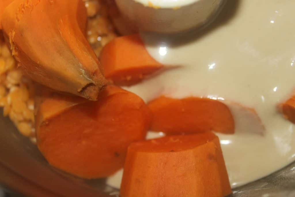 - 200g de patate douce (pareil : poids pesé après cuisson)