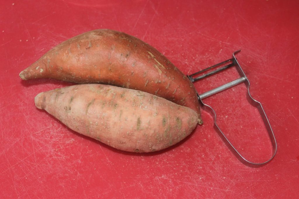 Faites cuire les patates douces. Il suffit de les éplucher et de les couper en morceaux.