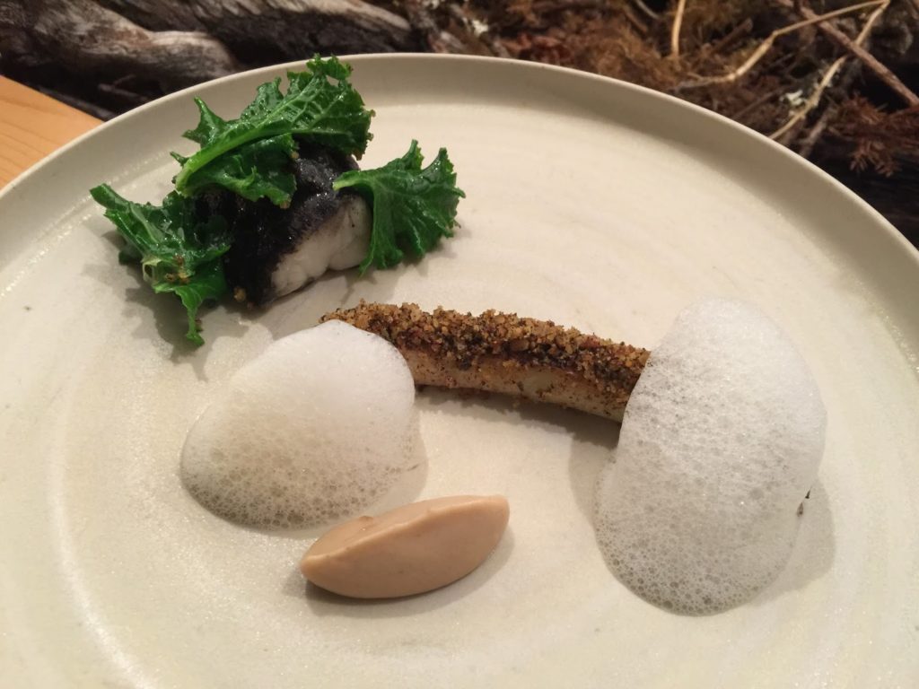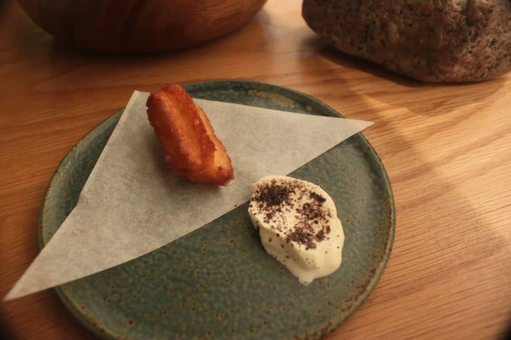 Le pain est toujours présent sur les tables avec du beurre classique et du beurre fouetté avec une poudre d’algue (la truffe de mer dont je parle plus loin dans l’article).