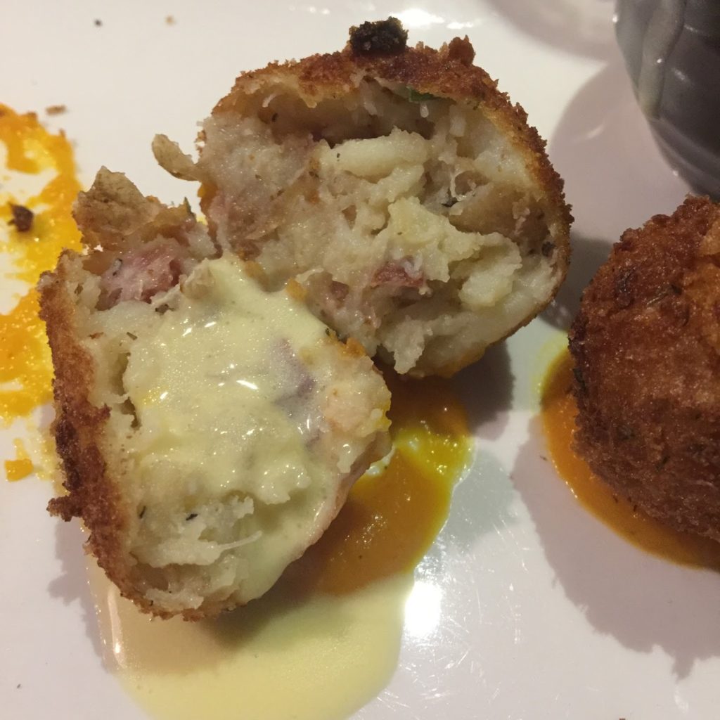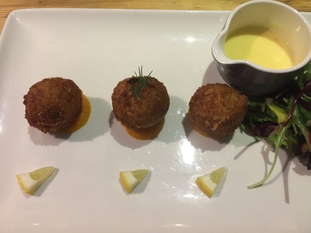 En entrée j’essaie les croquettes de pommes de terre et crabes.