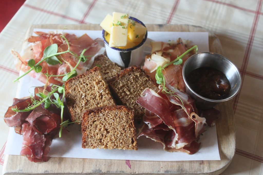 L’assiette typiquement irlandaise (surtout dans les familles) avec des œufs, du jambon, du fromage de pays et le pain maison.
