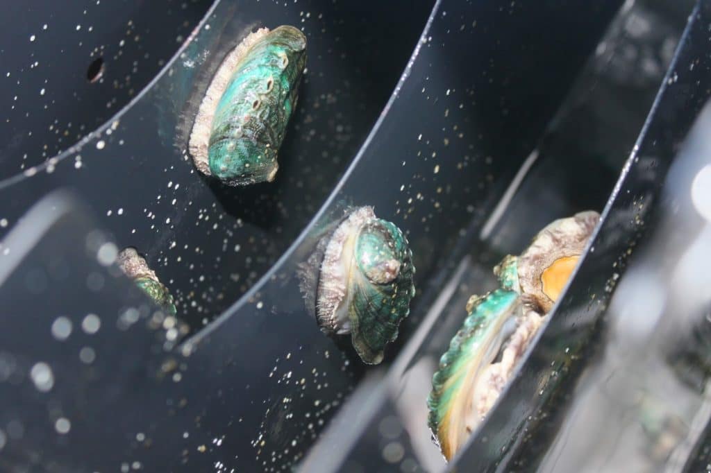 Les ormeaux craignent la lumière et sont donc protégés par une petite plaque de plastique noir.