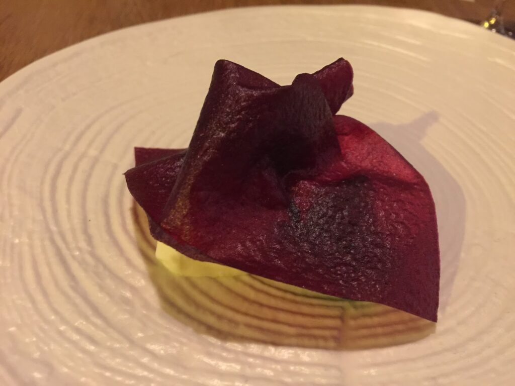 Je termine au bord de l’évanouissement gastronomique avec deux desserts. L’un avec de la betterave sous une crème légère aux parfums fleuris.