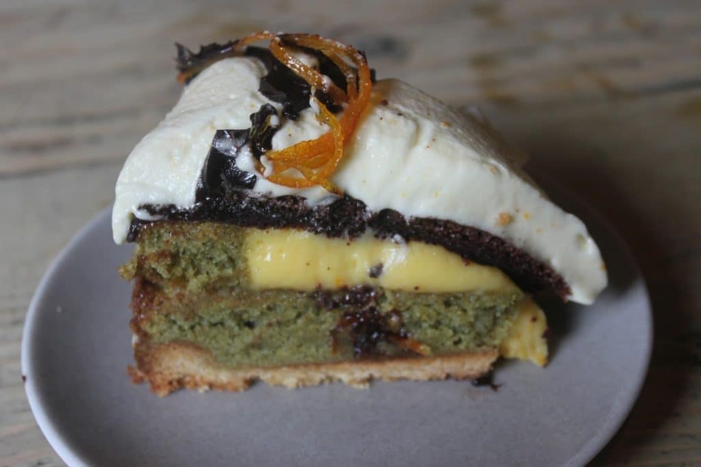 Pour le dessert, une part de gâteaux aux pistaches, citron, chocolat et crème à l’orange. Comment dire, c’était une petite bombe !!